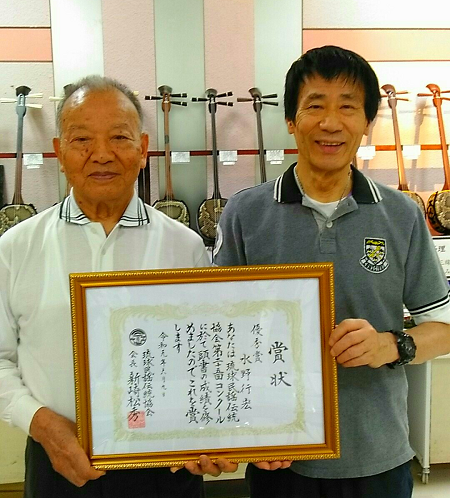 年1回、同協会開催の「琉球民謡コンクール」で段位の試験がある。昨年は新人賞段位に、今年は上位の優秀賞段位に何とか合格できた。