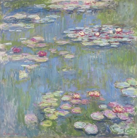 ルノワール〈アルジェリア風のパリの女たち〉、モネ〈睡蓮、柳の反映〉が燦々と輝く太陽に照らされているように神々しく見えた。