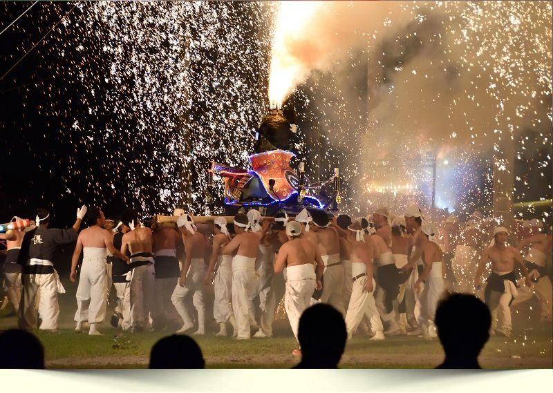 勇壮な長良川畔の火筒神輿
