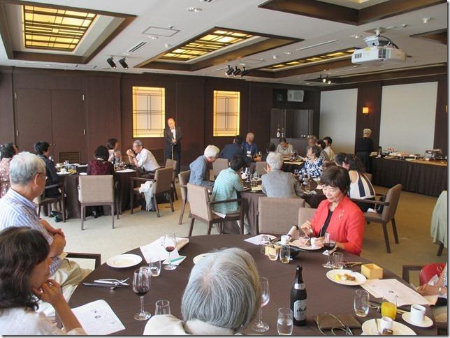 好天に恵まれ、みなさまの出足もよく過去最多の32名の参加者でした。うち2名の方が今回初めて参加で、成田空港から直接駆け付けた方もいました。大久保彦左衛門の下屋敷であった、素晴らしい庭園で写真撮影後、リンデンの間で懇親会となりました。各自のスピーチを楽しく聞いているうちに、2時間も瞬く間に過ぎました。「今日の日はさようなら」を全員で歌い、お開きとなりました。続いて館内で2次会があり、ほぼ全員が参加しました。恵比寿に場所を移し3次会もあったようです。