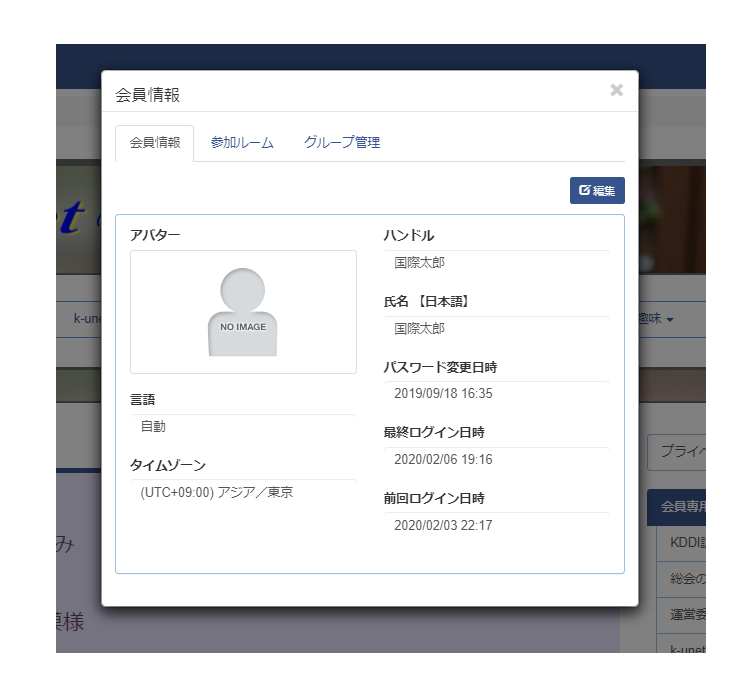 すると次図のようなウィンドウが表示されます。会員情報のタブになっていますが、違っていれば「会員情報」のタブを選択すると次図の画面になります。