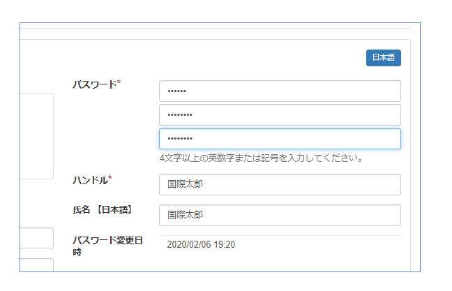 入力欄の表示に従って、まず現在のパスワード、次に変更したいパスワードを入力してください。更したいパスワードは確認のため、2回入力します。