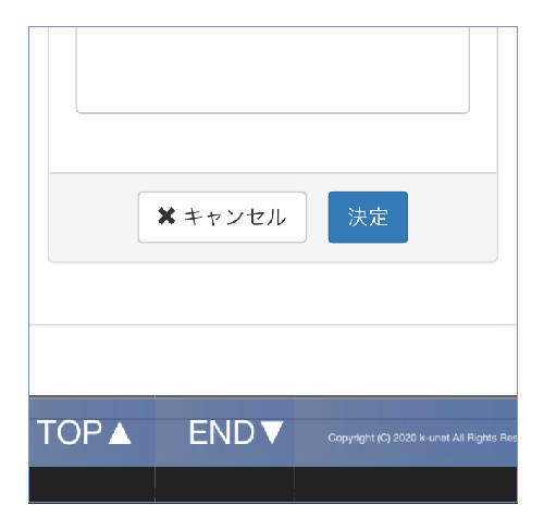 入力が完了したら、一番下の決定の青いボタンをクリックしてください。取り消したい場合はキャンセルボタンをクリックすると変更操作がキャンセルされます。