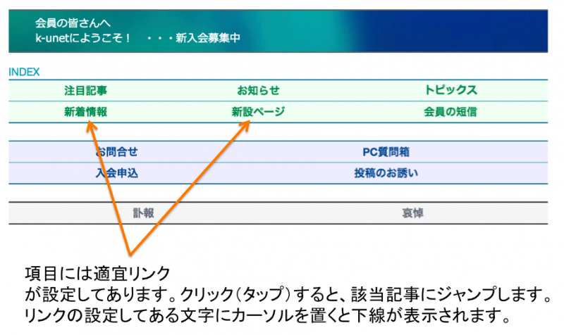 k-unetホームページを操作する上で最低限必要なことを説明します。